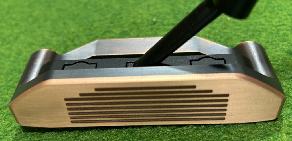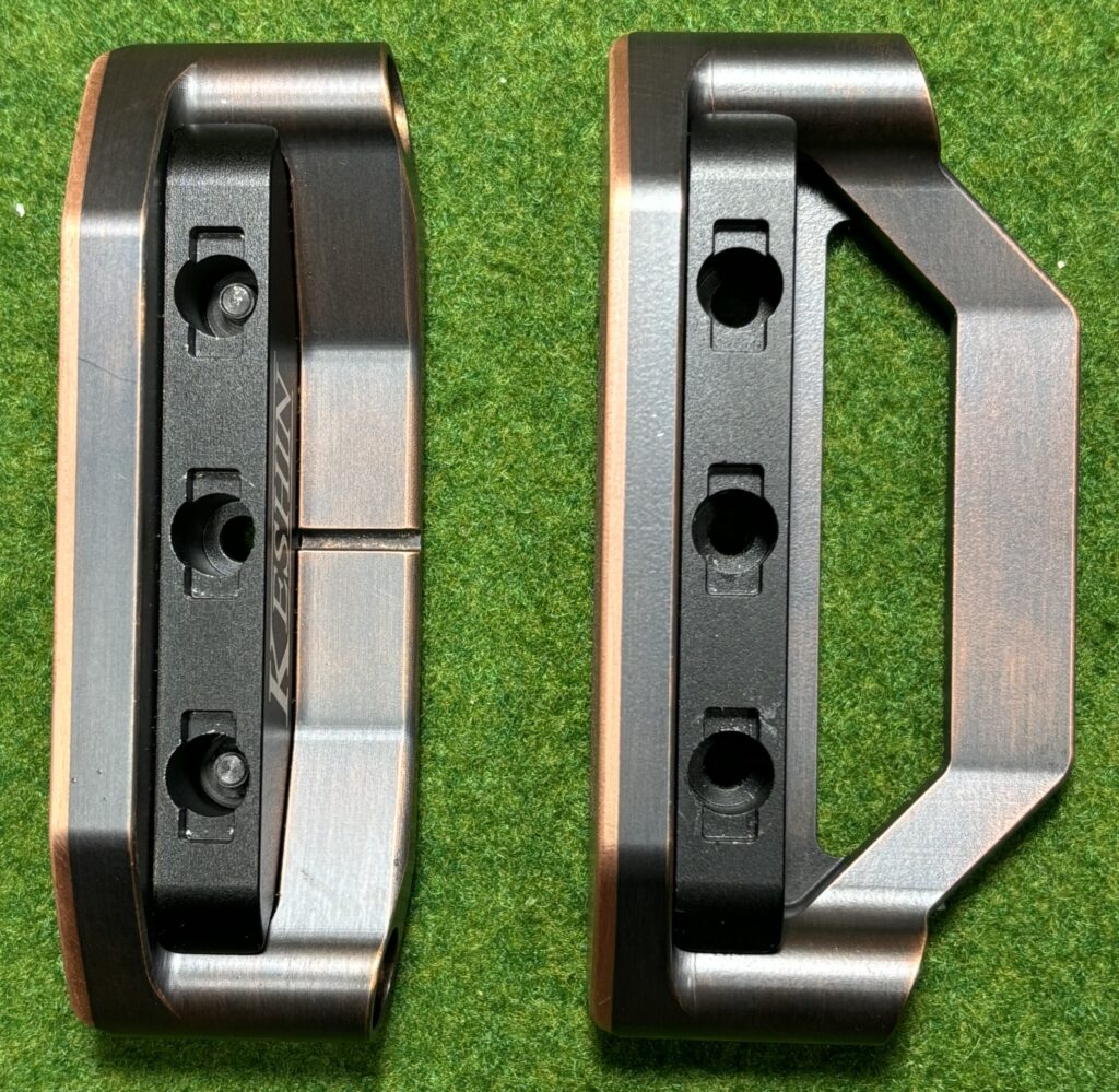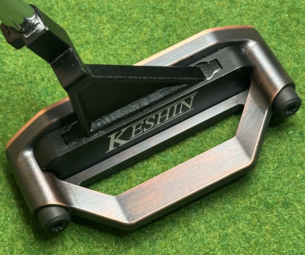 【HEAD DESIGN】 削り出し銅ボディと高強度アルミA7075カートリッジの融合 TypeA ブレード型 TypeB セミマレット型ネックはヒール・センター・トゥの3ポジションに装着可能。 このKESHIN独自のマルチポジション構造は、実用新案登録済(登録第3251821号)です。 装着位置を変えるだけで重心やフェースバランスが変化し、 プレイヤーの感性に寄り添ったフィーリングが生まれます。 ヘッド本体は銅の無垢材をCNC精密削り出し。センターパーツには高強度アルミA7075を組み合わせ、打感の柔らかさと安定した重量配分を両立。 フェース面とトップラインの一部を、ヘアーライン仕上げすることで、アドレス時にフェース面が明確に視認できるデザインに仕上げました。フェースを意識したストロークを促し、狙いと転がりを一致させるヘッドです。 ロフトはType A,Bともに3.5°です。 削り出した銅ヘッドの柔らかい打感と心地よい響きを感じてください。 ヘッドスペック